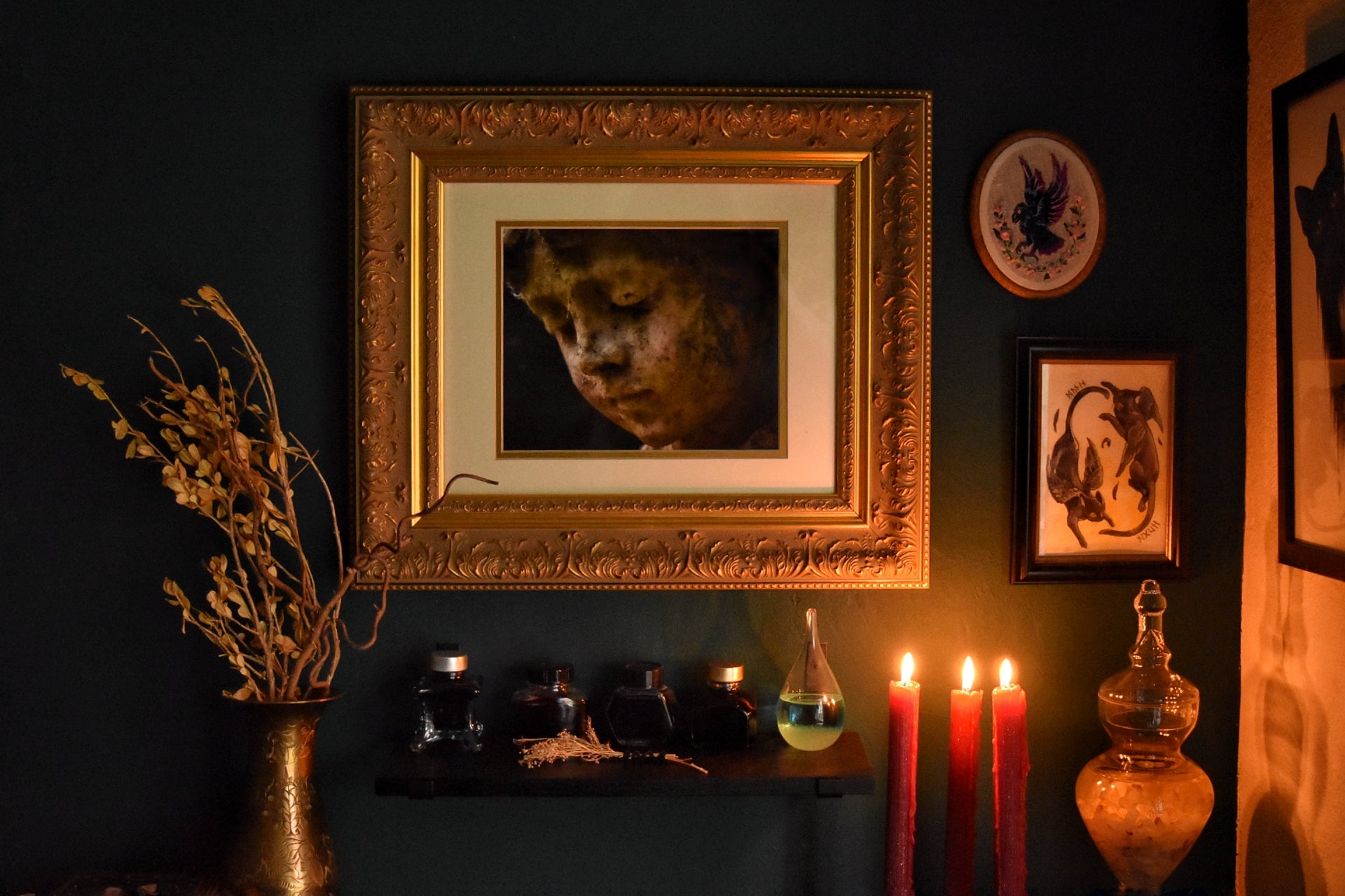 Second photo is an example of what it looks like like on a wall, in an ornate frame.
