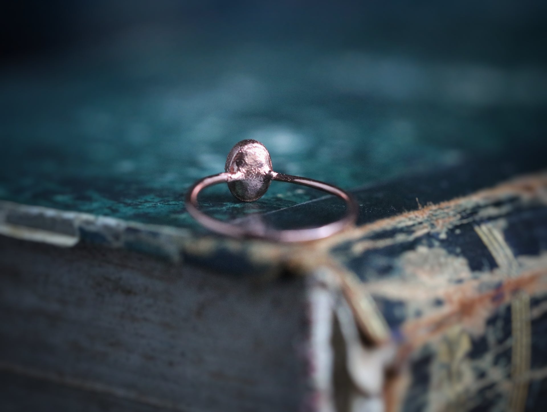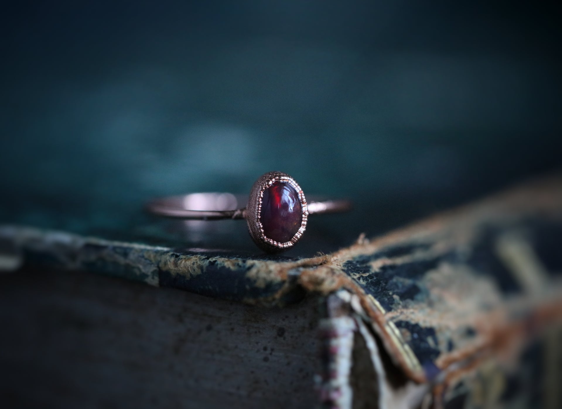 Black Opal in shiny copper, perfect for stacking with other dainty rings or to achieve a minimalistic vibe. The black opal boasts beautiful red flashes as it catches the light.